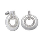 These earrings with rhinestones feature a stunning circle-in-a-circle design that truly catches the light. A dazzling circle of rhinestones is framed by a matte silver outer circle, joined together by a chic rhinestone stud post for a modern, sophisticated finish.