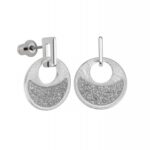Crescent moon shaped stud earrings with glitter and post closure. Nickel-free jewelry metal, finished to a high quality, approximately 0.5-inches in size.