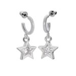 Half-hoops Star earrings with post closure – matte silver with star and rhinestones. Nickel-free jewelry metal, refined to a high quality. Dimensions: approx. 0.5 inches.