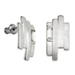 Brushed finish silver linear earrings with a stud back that are 0.8 x 0.5 inches in size.