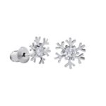 Stud earrings in a round shape, snow crystal, zirconia in the middle. Nickel-free jewelry metal, silver-plated.